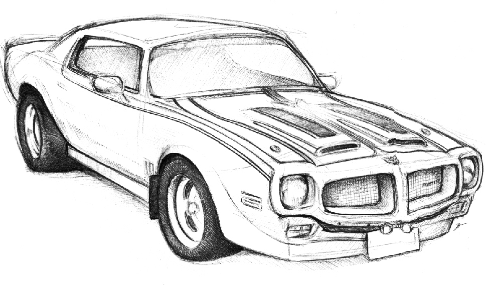 Ball-point pen illustration of an American classic, the 1970 Pontiac Firebird.